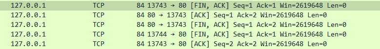 - 最后浏览器通过 13743 端口 发送 [ACK] 包给服务端,客服端与服务端连接就关闭了。