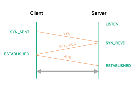 - ESTABLISHED - 表示连接处于正常状态,可以进行数据传送。客户端收到服务器回复的 SYN+ACK 后,对服务端的 SYN 单独回复(第 3 次握手),连接建立完成,进入 ESTABLISHED 状态。服务端程序收到第 3 次握手包后,也进入 ESTABLISHED 状态。