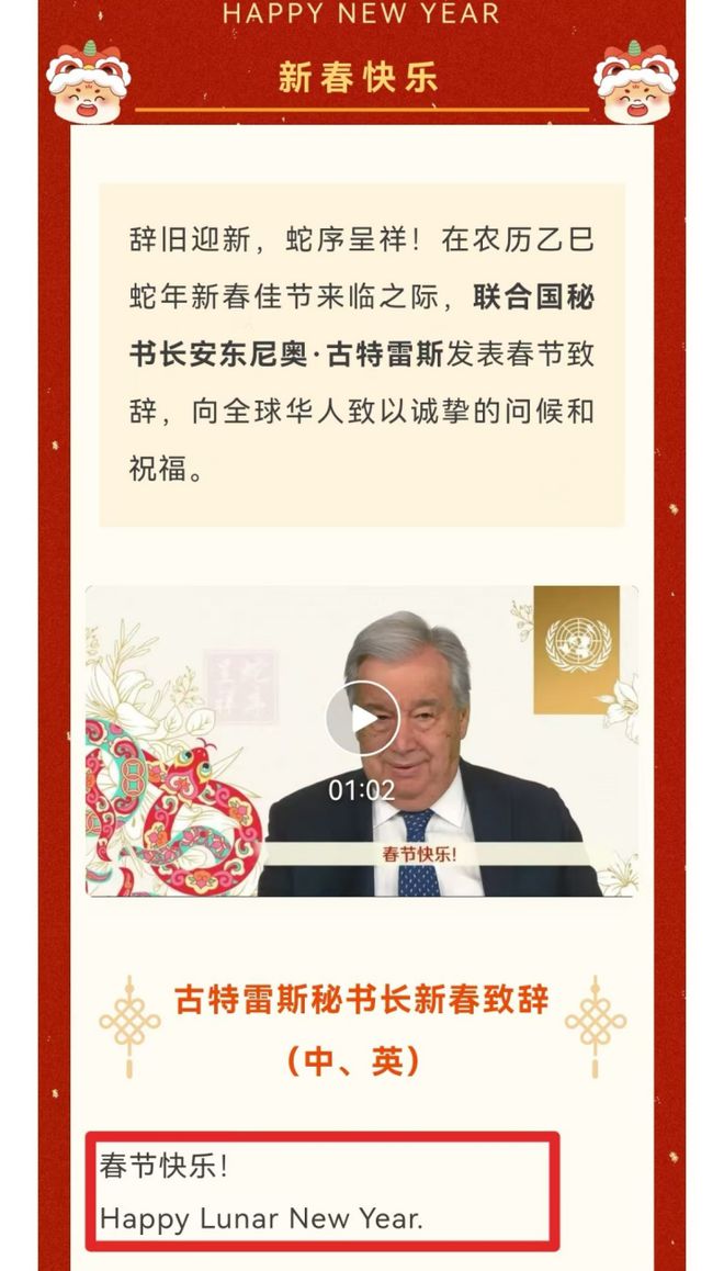 古特雷斯送新春祝福