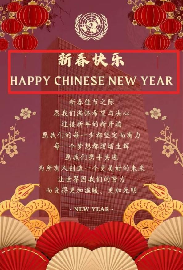 有意思的是,这篇联合国推文的后面附上的海报,翻译则是Chinese New Year。