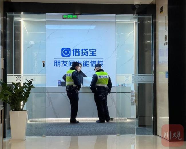 央视点名后,借贷宝办公区域已被警方封锁,有人员被带离(图/川观新闻)