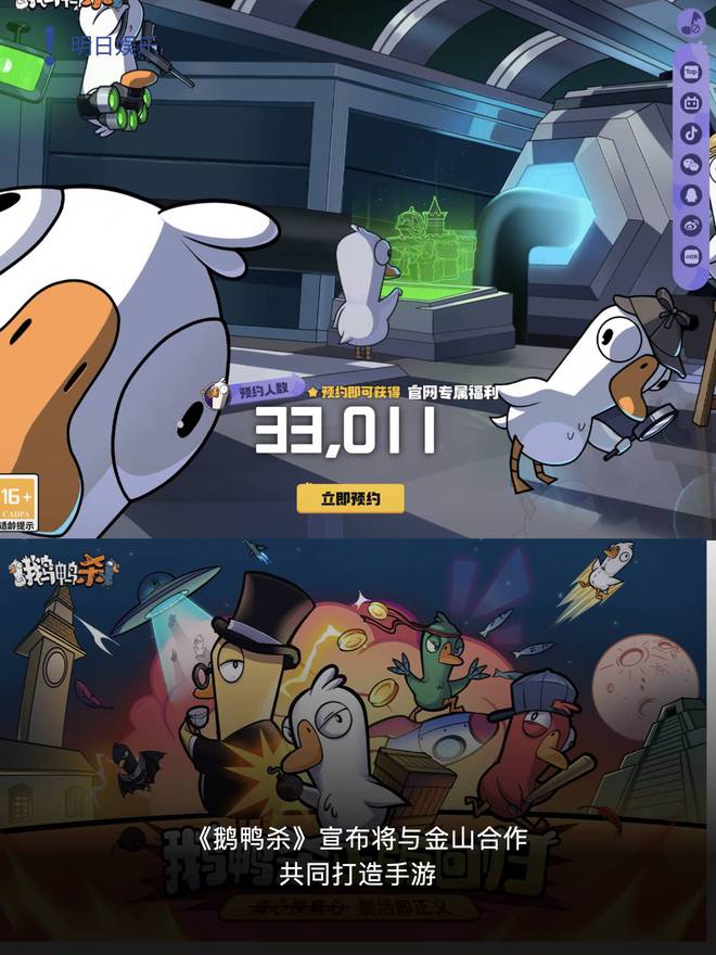 16.《鹅鸭杀》将与金山合作