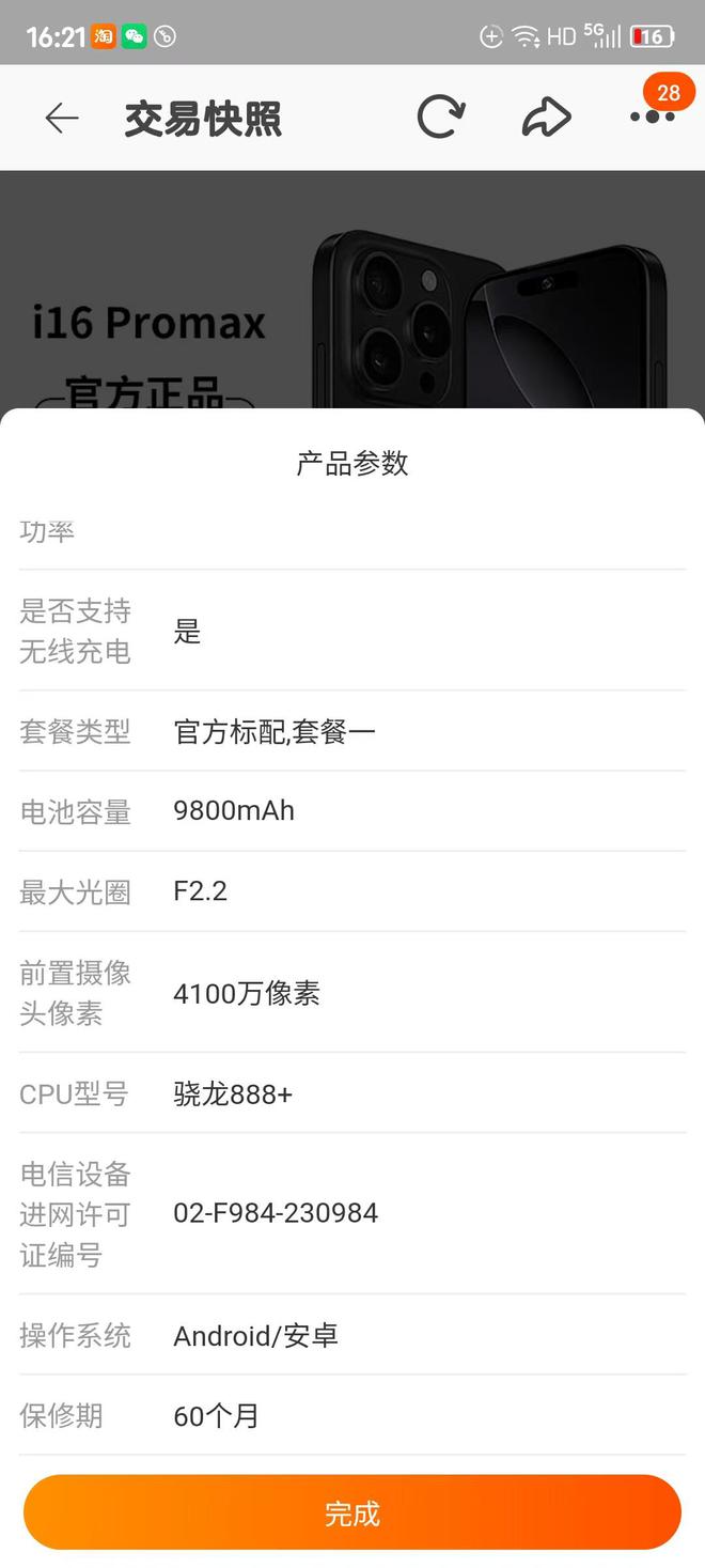 “两部手机的配置,店铺页面介绍均是骁龙888+,16G+516G。”陈先生说,“然而我收到货后,发现包装盒没有品牌型号、手机参数、生产日期、合格证,甚至连厂商厂址也没有。”陈先生用软件对两部手机进行检测,发现手机参数和商家宣传页面的介绍不符。“更让人气愤的是,手机上贴的入网许可证,我在工信部网站查询发现,入网许可证编号对应的是另外的手机,属于张冠李戴。”他说。