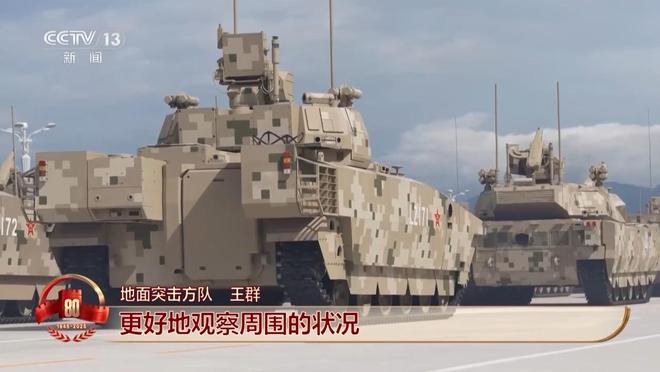 地面突击方队 王群:100支援战车还增配了无人操作手,可以操作无人侦察车和无人机,能够大幅提升侦察能力,精准打击火力目标。