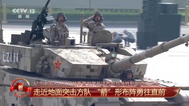 在这次阅兵中,由99B坦克、100坦克、100支援战车编成的地面突击方队呈“箭”形布阵,寓意打赢之箭、胜利之箭。