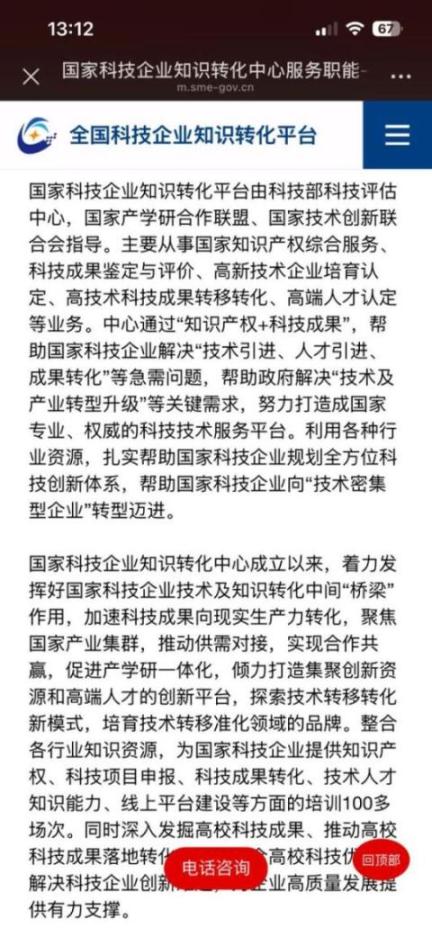 该平台介绍称,平台由科技部科技评估中心,国家产学研合作联盟、国家技术创新联合会指导。主要从事国家知识产权综合服务科技成果鉴定与评价、高新技术企业培育认定、高技术科技成果转移转化、高端人才认定等业务。
