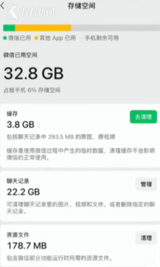 所以想让微信瘦身,除了及时清除缓存数据,定期对聊天记录空间进行管理,也很重要。除了删除,也可以迁移到其他设备,或者备份到电脑。聊天记录一旦删除,就不会再占空间。而用户如果转发同一文件,实际存储只保留一份,也不会重复储存。此外,过期文件也不会占用空间,