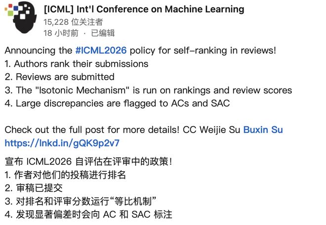 面对这场审稿危机,ICML 2026终于坐不住了。他们推出了一项极具颠覆性、甚至带有博弈论色彩的新政——作者自评级。