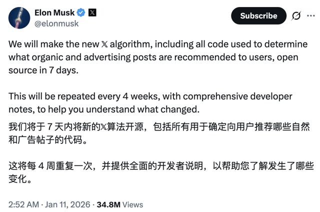 不过,马斯克选择开源 平台推荐算法可能另有原因。