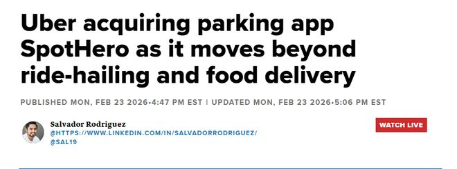 【环球网科技综合报道】2月24日消息,据CNBC报道,Uber表示将收购 SpotHero,后者是一家为市中心、体育赛事和音乐会等场景提供停车预订应用程序的公司。