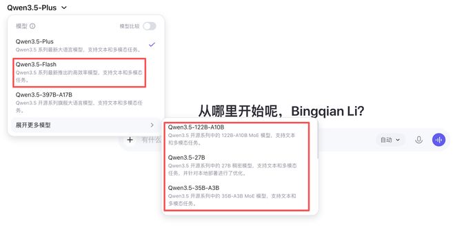 目前,Qwen Chat上的模型均已更新为Qwen3.5系列,最新四款中型模型也已上线。智东西第一时间对这三款开源模型进行了初步体验,发现这三款中型模型已能满足多种日常的多模态理解、知识解答、视觉编程等任务,达到匹敌Qwen3-235B-A22B-2507的效果,不过在SVG卡通场景绘制等场景仍有提升空间。