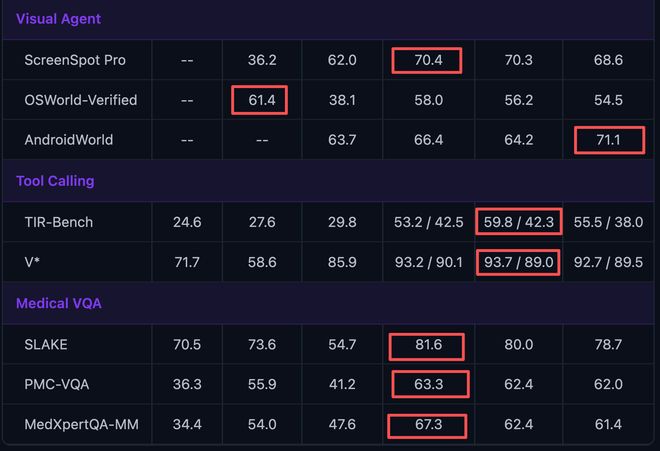 聚焦视觉智能体与专业视觉能力,Qwen3.5系列垄断视觉智能体与医疗视觉核心能力:在8项测评中,Qwen3.5系列包揽了6项最高分,仅在桌面系统交互(OSWorld-Verified)上落后于GPT-5-mini,整体视觉智能体与医疗视觉能力领先。