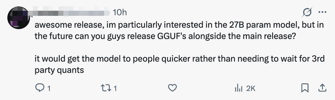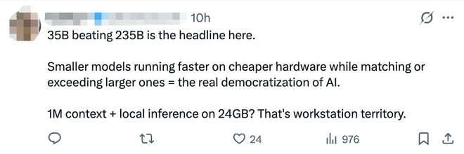 有网友称:“更小的模型在更便宜的硬件上运行速度更快,同时还能达到甚至超越大型模型的性能——这才是AI真正的民主化。”还有网友分享:“我现在在一个项目上每月要花2000欧元购买Gemini服务,如果这是真的,那费用就降到每月50欧元了。”