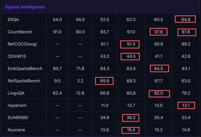 在空间智能方面,Qwen3.5系列实现全维度领跑。在视频理解方面,Qwen3.5-122B-A10B成为本次测评的绝对领跑者,包揽带字幕的视频多模态理解能力、视频与语言结合的跨模态理解能力等6项单项最高分。