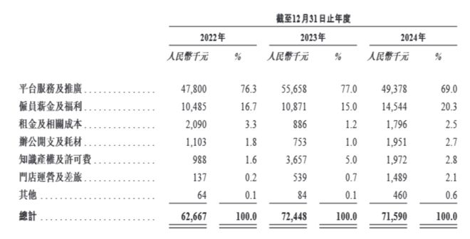 除此之外,根据招股书,2022年-2024年,铜师傅在平台服务及推广方面的开支分别为4780万元、5565.8万元、4937.8万元,显著高于同期的研发支出1880.2万元、2863.8万元、2821.2万元。