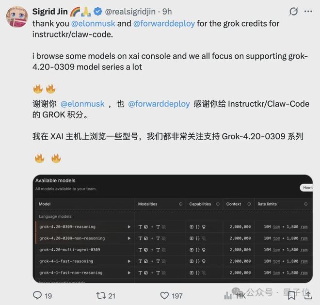 Jin专门发帖感谢马斯克,说xAI给他送了不少Grok积分,这对Claw Code的重写帮了大忙。