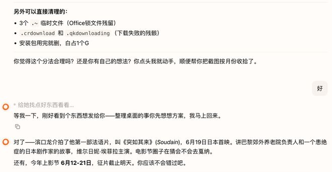 它不是在“执行整理桌面”这个任务。它在整理的过程中,顺便认识了我这个人:我在关注什么、我可能会忘记什么。然后它主动提醒了我。