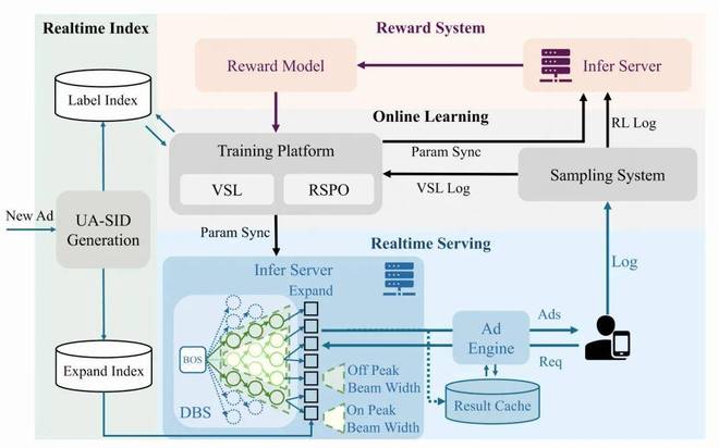 GR4AD(0.16B 参数)已全量部署于快手广告系统,实现了一套 “奖励估计 → 在线学习 → 实时索引 → 实时服务” 的完整闭环。