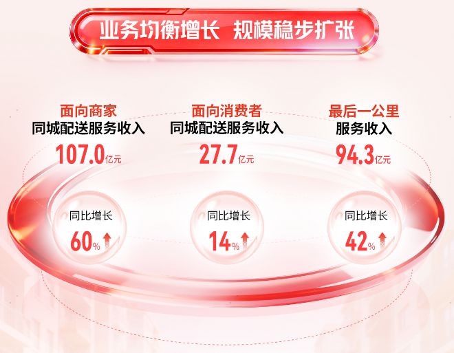 2025年财报显示,顺丰同城全年同城配送服务收入约134.66亿元,同比增长47.6%,其中面向商家的同城配送同比增长60%;最后一公里配送服务收入约94.31亿元,同比增长42.4%。
