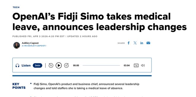 【环球网科技综合报道】OpenAI 的产品与业务负责人菲吉·西莫(Fidji Simo)于本周五宣布了多项管理层变动,同时透露自己因神经免疫疾病病情加重,将休一段较长的病假。