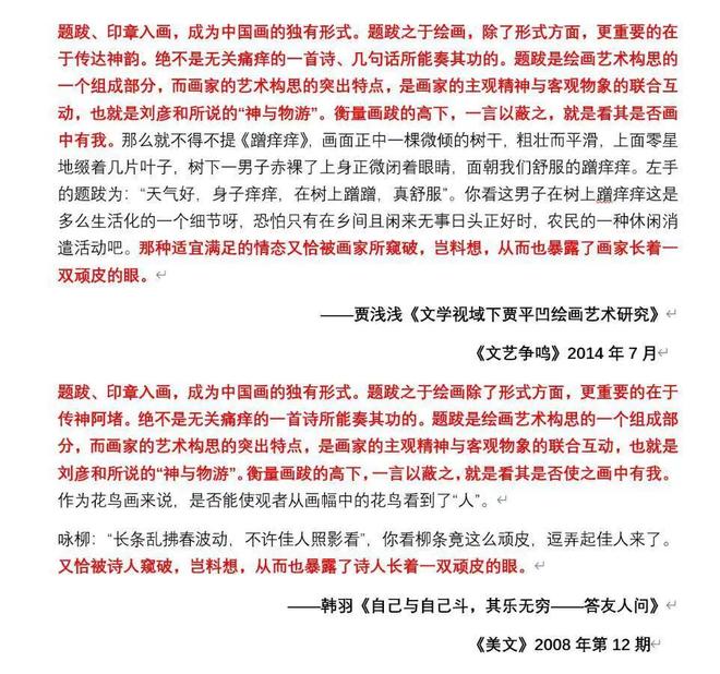此外,涉嫌被贾浅浅抄袭的原文之一,作家韩羽的作品《自己与自己斗,其乐无穷——答友人问》,原文首发杂志《美文》主编就是贾平凹,这背后是巧合还是有别的什么,也亟待查清。