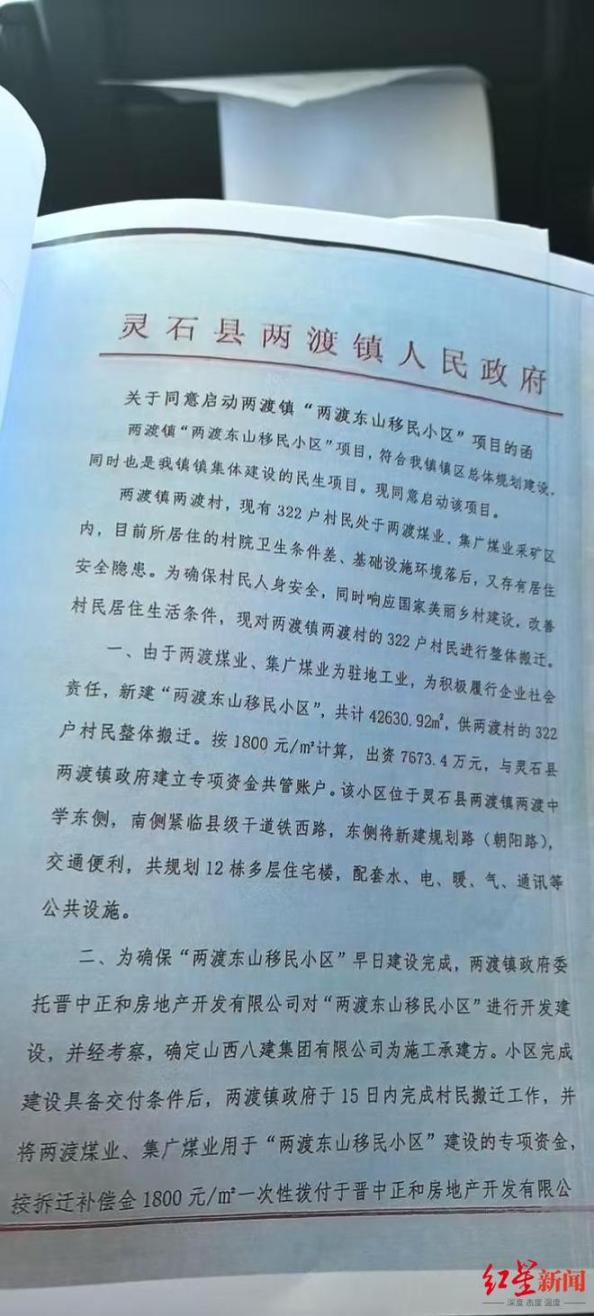 3月31日,灵石县两渡镇人民政府书面答复雷女士一方,称两渡镇东山移民小区由晋中正和房地产开发建设。东山移民小区仅为项目名称,属于企业的自主投资行为,与移民安置工程无任何关联。并表示由此产生的与其他公司的经济和合同纠纷,建议通过司法途径解决。