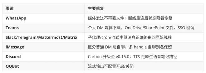 媒体与生成能力:媒体生成工具新增跨提供商自动降级机制,视频生成支持 Seedance 2.0 的前置铺垫;Discord 新增事件封面图。