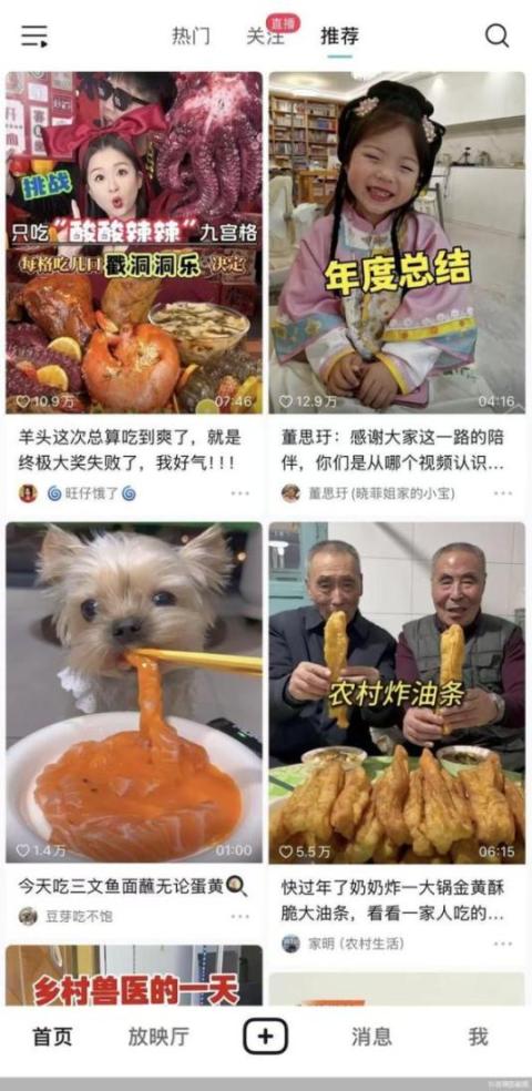 在页面视觉上,抖音精选与抖音最大的不同在于,"推荐"频道采用双列信息流展示方式,并列展示视频封面和提要,给予用户主动选择内容的权利,封面与文案成为决定点击率的关键因素,这实际上也是小红书多年来打造社区内容平台的杀手锏之一。