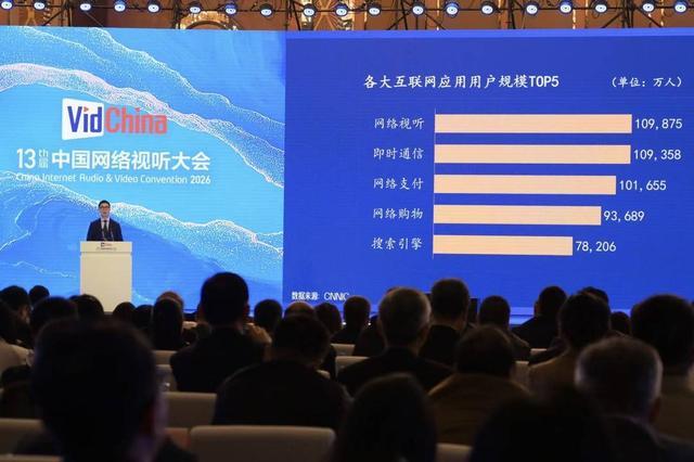 当天上午,大会开幕式现场发布《中国网络视听发展研究报告2026》,披露了过去一年行业的关键数据。数据显示,截至2025年12月,我国网络视听用户规模达10.99亿人;新入网的网民中,44.6%的人第一次上网时使用的是短视频应用;网络视听用户人均单日使用时长为201分钟,同比增长4.2%。