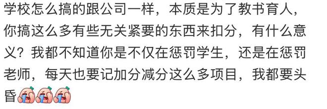 还有网友认为,考核制度名目繁多令人窒息,“天天考虑这么多怎么用心学习”,仅看考核表,苏先生弟弟没有重大过错,劝退处理过于苛刻。网友劝苏先生不要着急,转学或许对弟弟是好事。