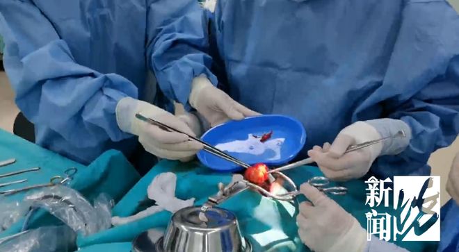 最终,历时三小时,这枚6.6乘3.5乘3厘米的畸胎瘤被分为两块,完整切除。术后5天,小亮几乎完全恢复了。