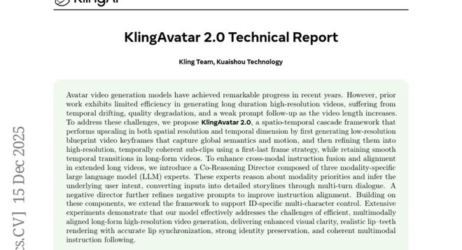 这项由快手科技Kling团队领导的突破性研究于2024年12月发表,论文编号为arXiv:2512.13313v1。想了解完整技术细节的读者可以通过该编号查询原始论文。这不是一个简单的技术升级,而是一... 全文