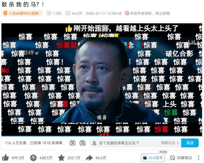 以UP主“哦呼w”根据电影《让子弹飞》剪辑的《敢杀我的马?!》为例,它将电影中的经典台词摘出,剪辑成有节奏感的歌词,既传达了电影本身反权威、求公平的内核,又用一段连续“哈哈哈”的剪辑形成某种蔑视而魔性的感觉,让很多用户发弹幕表示“上头”“笑不活了”。目前该视频播放量累计达1.2亿,点赞量高达499万,也是“入站必看”系列之一。