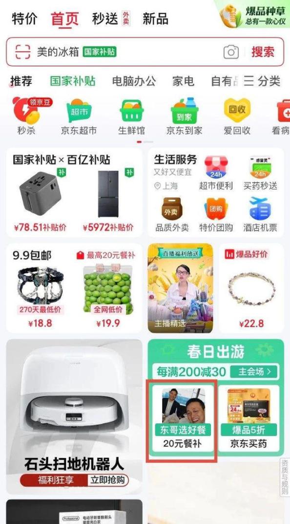 4 月 9 日,蔚来创始人李斌到访京东总部时,专门与刘强东一起点了份京东外卖。李斌称,他问刘强东,京东搞外卖是认真的吗?刘强东回答说必须的。此后,京东专门将刘强东与李斌一起吃外卖的合影放在京东首页,标题为"东哥选好餐"。