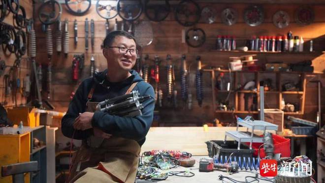 今年40多岁的“猪坚强”,本名顾玉鹏,高中毕业后,他在家具和木工行业摸爬滚打了十多年。辞职之后,他在简陋的工作间里开启了自己的发明之旅:“从小就热衷于捣鼓电子机械和木工活,创业攒下一些积蓄后,就想着尝试去实现儿时的梦想。”