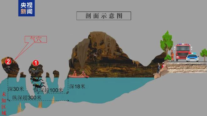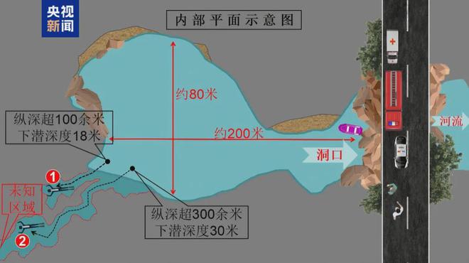 “大概过了12个小时,我就看到水下有一束特别亮的光,那个光它都能泛到我脚下水域,就那种荧光绿的感觉。我就知道肯定是专业的搜救队,我就赶紧拿潜水装备,用那个气瓶的底部去撞击出水口上方的那个岩壁。我当时就认为可能几个小时,我就会被找到。”据小周回忆,持续了一段时间,那个光源就消失了。