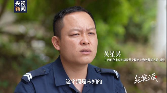 广西百色市公安局特警支队水上勤务救援大队辅警吴星昊:你不知道里面的环境构造是什么样,最大的难点是这个洞是未知的。