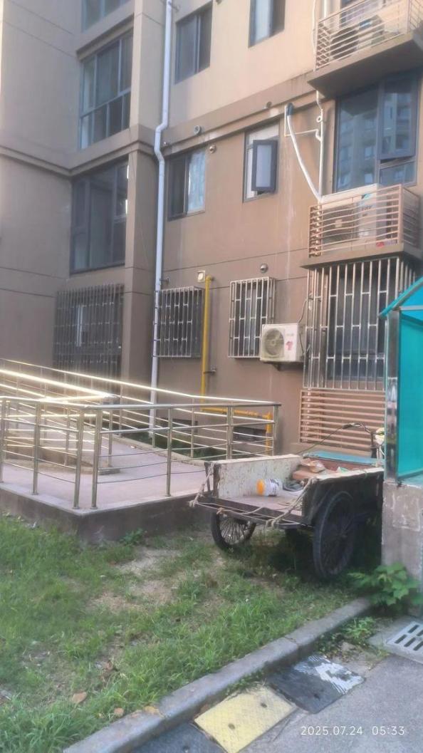 奉贤区张弄富苑小区一位3楼的居民正通过“飞线”为自己的电动自行车充电