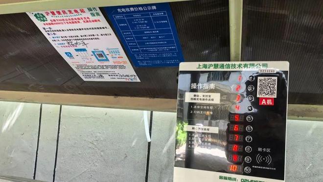 7月24日,记者来到小区。每幢居民楼前都有非机动车车棚,棚里都装有沪慧通信充电桩,一台机器连有两侧10个插座,操作指南提示限使用400瓦以下充电器。或许是听到了居民们对于涨价的质疑声,一旁已张贴出了“充电收费价格公示牌”:收费分为电费和服务费两部分,电费按照国网居民用电价格收取,峰时0.641元每度,谷时0.331元每度,而服务费则不管峰谷统一为0.58元每度。