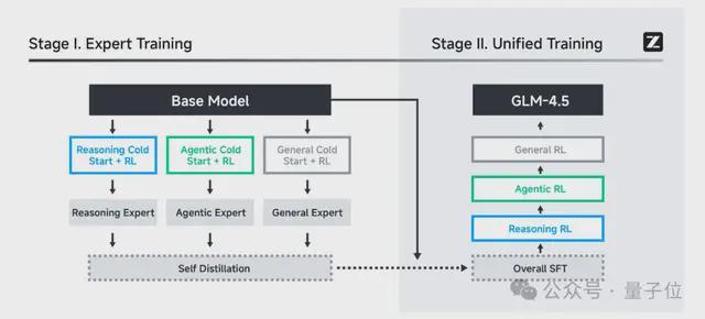 这个过程从对精选的推理数据和综合的智能体场景进行监督微调开始,随后通过专门的强化学习阶段培养专家模型。
