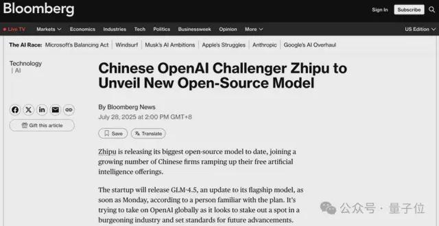 而且在智谱正式发布动作之前,彭博社就来了一波预告: