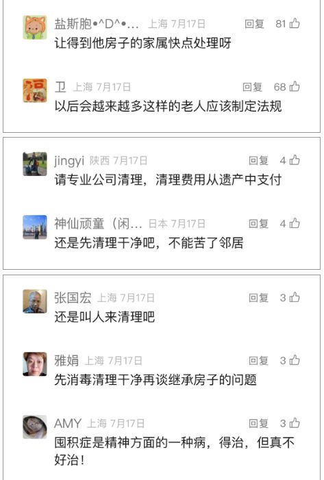近日,小坊报道了虹口区玉田新村有位独居老人突然离世,留下满屋发臭的垃圾无法清理。