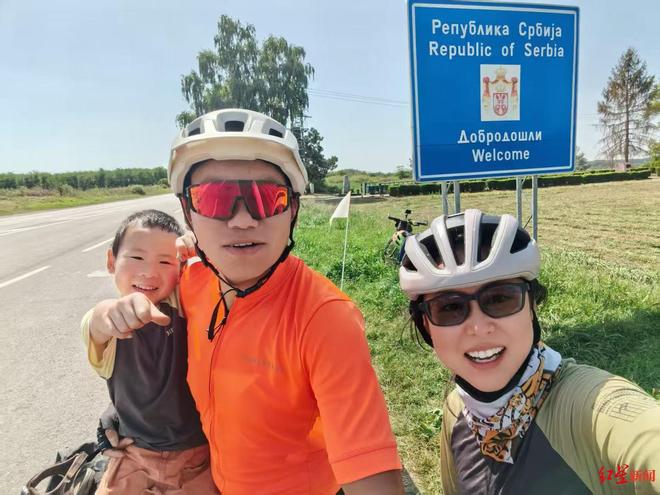 ▲李瑞一家骑行到塞尔维亚