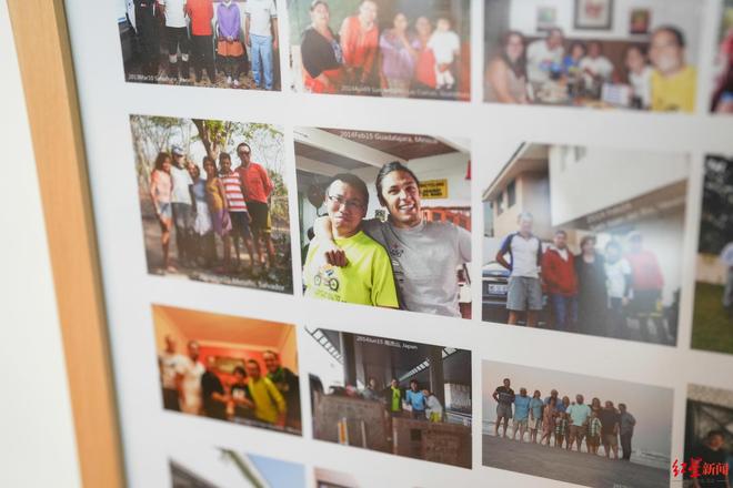 一家人旅行中的纪念,是和不同国家的人的合影,“这里有和75个家庭的合影,都是我们在旅行时帮助过我们的家庭,比如美国、伊朗、德国等地的家庭。像是我们住在他们家里,我就会向他们介绍成都的历史文化,我的老婆就会用水煮牛肉和糖醋排骨来征服他们的胃。”