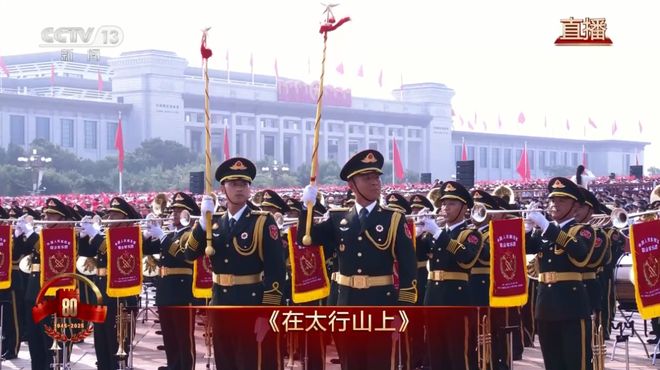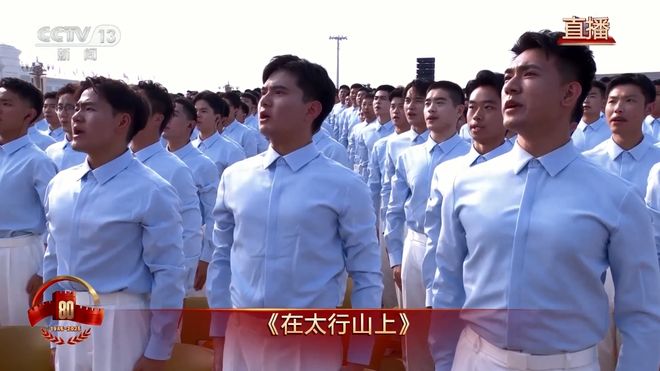 阅兵前的暖场环节中,联合军乐团和合唱团现场奏唱的4首歌曲分别为《松花江上》《在太行山上》《保卫黄河》和《没有共产党就没有新中国》。
