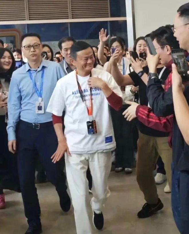 今年2月,马云现身阿里杭州园区,身穿黑色阿里文化夹克衫的他,微笑着与员工挥手致意。