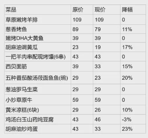 10月1日,西贝官方小程序显示,菜品价格已完成调改。以此前罗永浩就餐时的账单为例,草原嫩烤羊排原价119元,现价109元;葱香烤鱼原价89元现价79元;黄米凉糕(6块)原价29元现价26元。