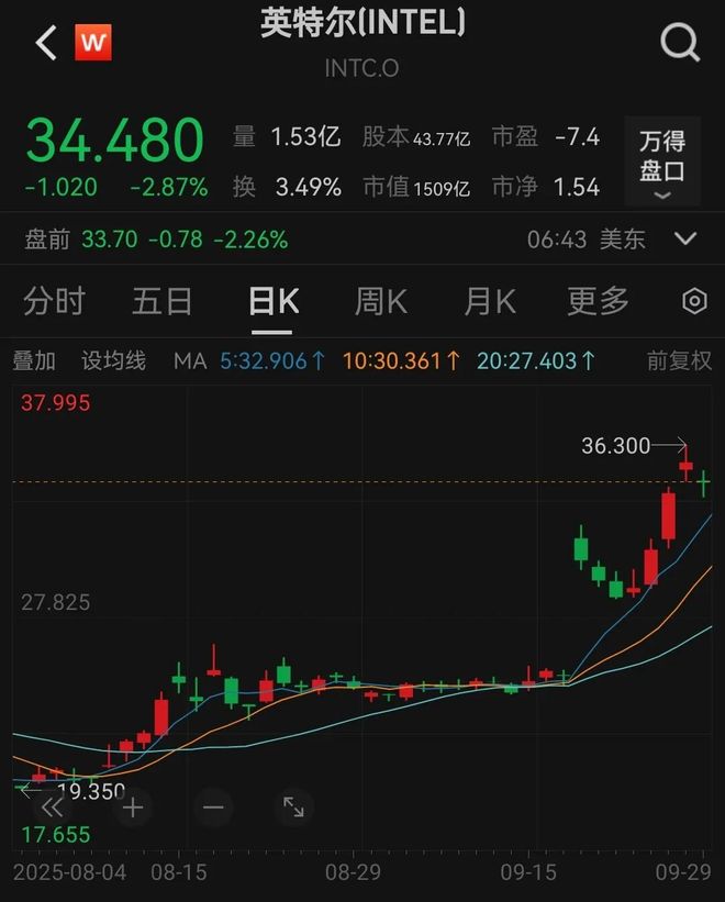 英特尔多次获得的现金注入提振了投资者情绪,公司股票自8月中旬以来已累计上涨逾40%。今年以来,已累计涨逾70%。