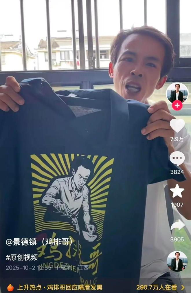 10月2日,“鸡排哥”在个人社交媒体账号上发视频称:“昨天我穿这件衣服去工作的,这是我们的服装,现在听说有些平台出现仿版,希望大家不要上当受骗。”