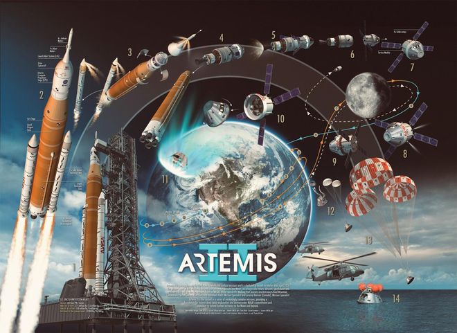 美国计划于2026年执行阿尔忒弥斯2号任务,是一次用于验证的绕月飞行 图片来源:x.com/InfographicTony